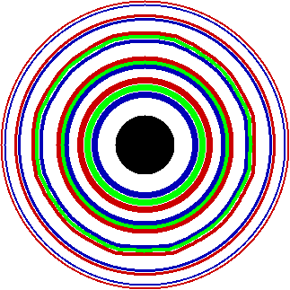 波長は色ごとに異なるので、いろいろな色のリングが見える。