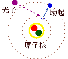光電効果を模型的に表すと、従来の模型がこのように変更される。