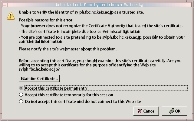 ログインすると、本学では certification についてのウィンドウが出るので、