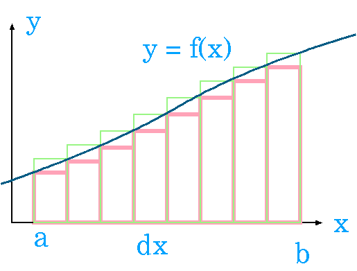 ∫ 記号を使用。微分すると解を得られるように探す。 積分範囲の指定がなければ定数項がついてくる。