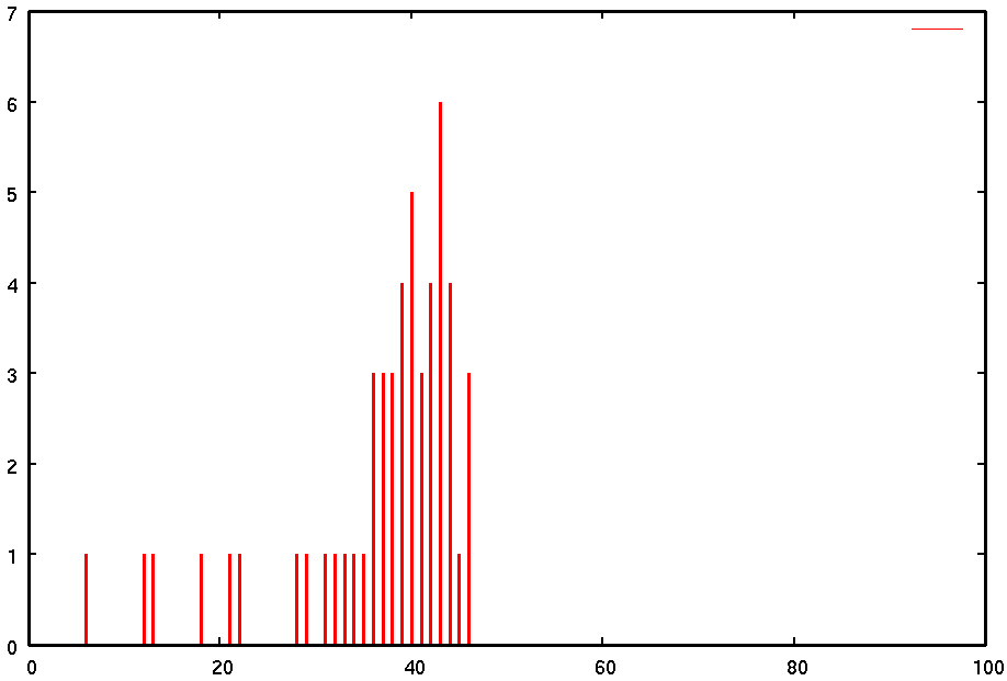 12 回終了までの学生の点数分布を調べた。 全てのレポートを提出しておくこと。 これから毎回参加し、発表会に出席し、試験の平均点程度取れれば、 成績が取れる学生が多いが、レポートの評価が低い学生は、 とくに D のレポートを再提出しておくこと。